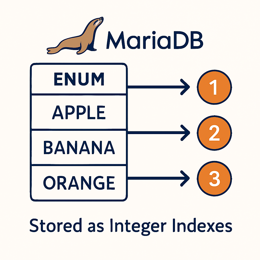 결론부터 말하자면, ENUM은 우리가 정의한 문자열 그대로 저장되지 않는다. 대신, 각 문자열 값은 내부적으로 정수 인덱스(integer index)에 1:1로 매핑되어 저장된다.